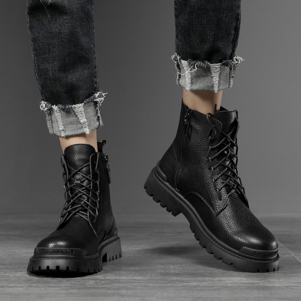 Martin Boots Men's Autumn New Fashion Casual Leather Boots Add Velvet Warm Leather High-Top Boots for Men