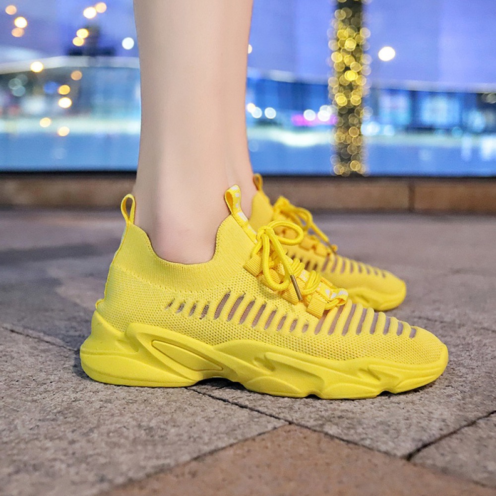 Summer New Sports Shoes Female Flying Knit Socks Shoes Female Breathable Student Dad Casual Shoes Female