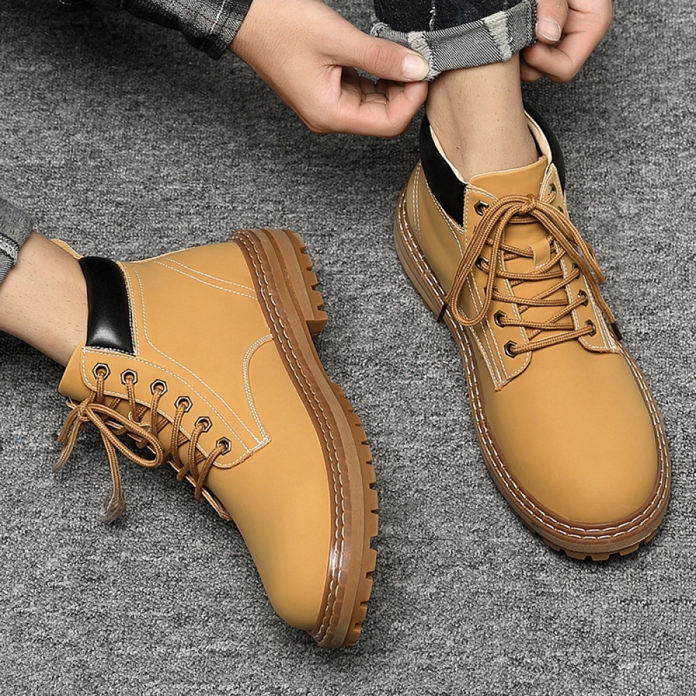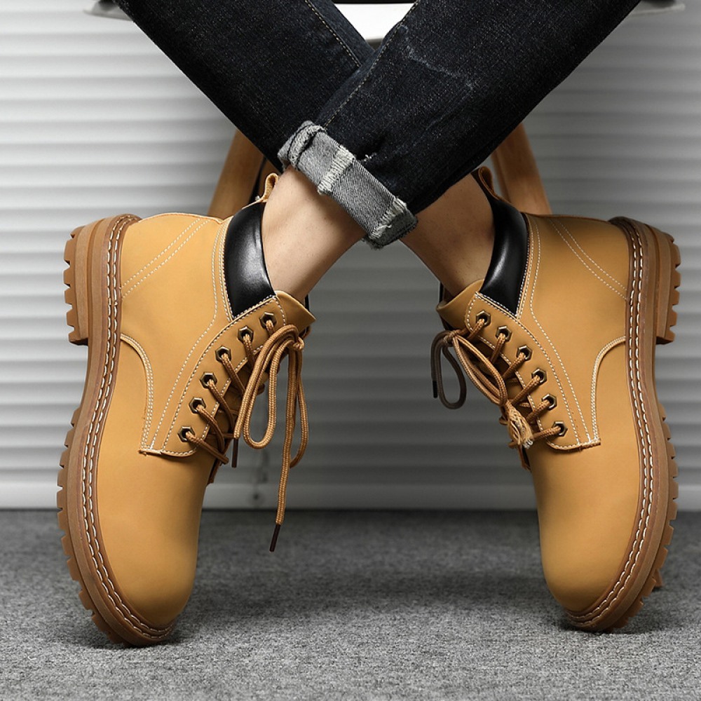 Martin Boots Men's Autumn New Leather Boots Casual Mid-Cut Tooling Boots High-Top Mens Shoes