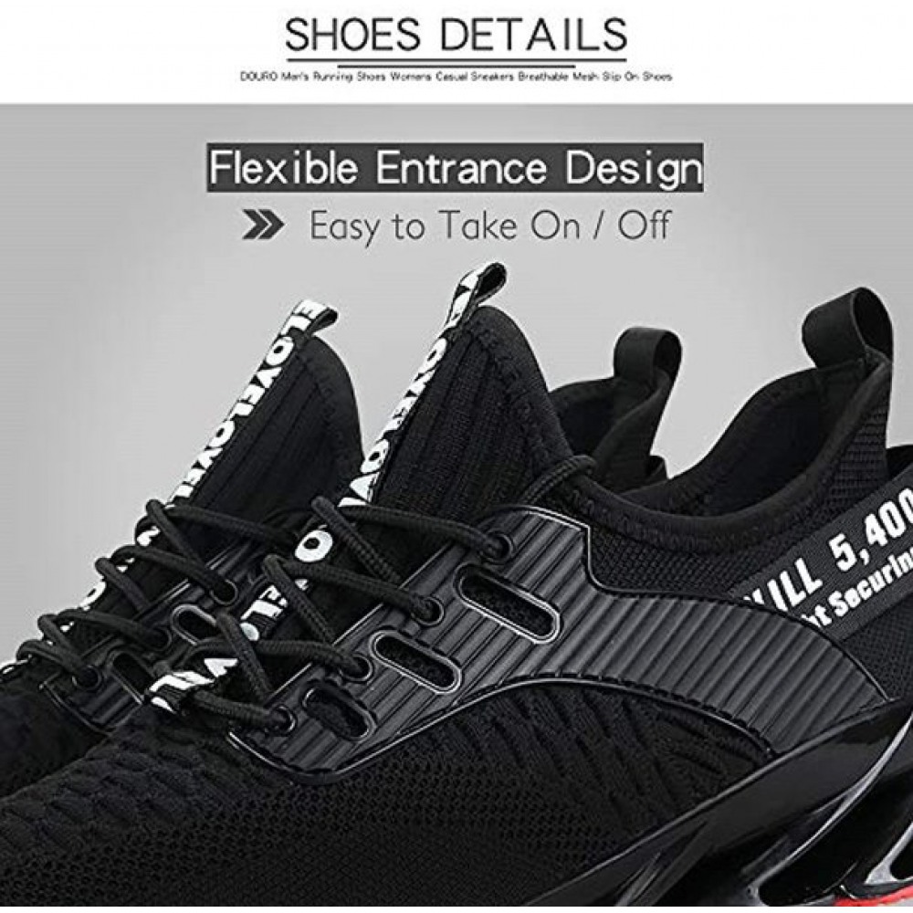 Men's Running Shoes Breathable Knit Slip On Sneakers Lightweight Athletic Shoes Casual Sports Shoes Black