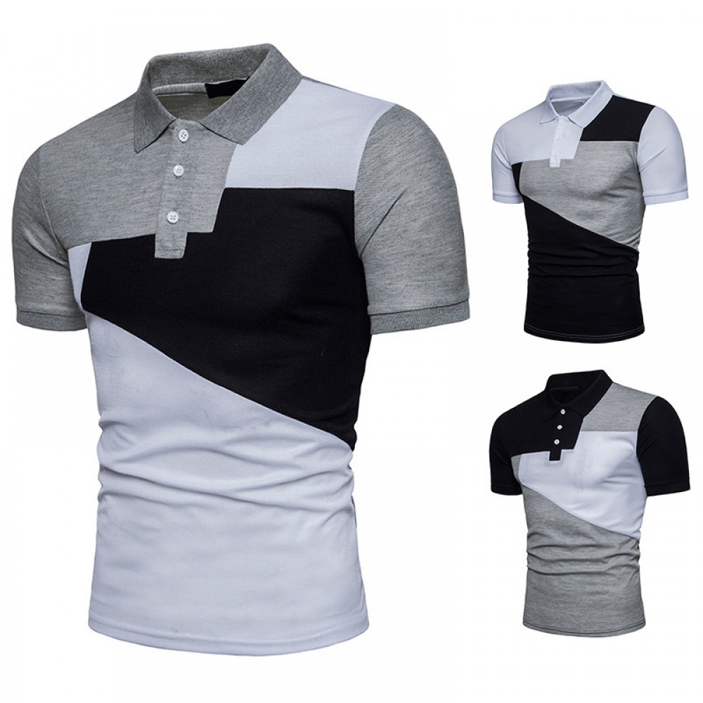 New Men's Fashion Large Size Color Matching Short Sleeve Polo