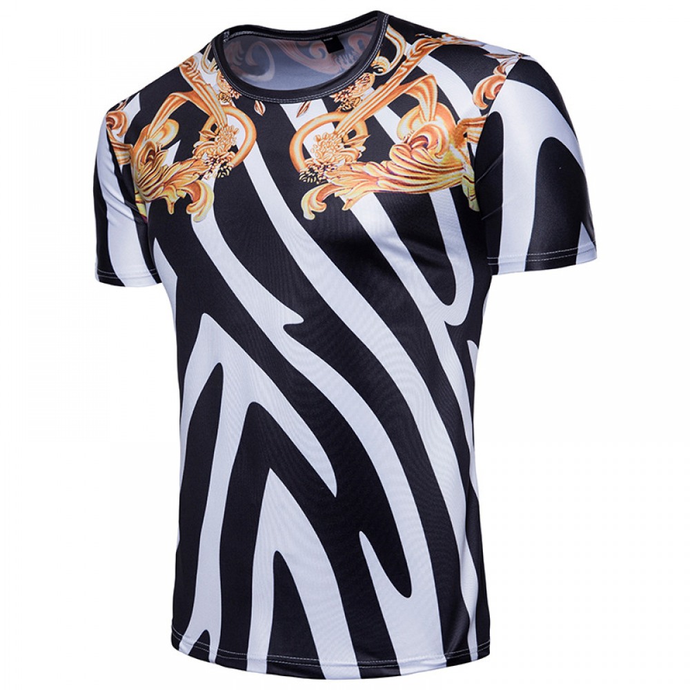 Men's 3D Printing Short Sleeve Wind Royal Texture Printing Zebra Print T-Shirt