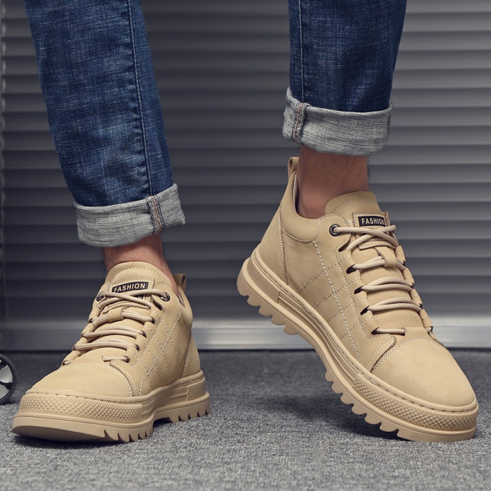 Men's Shoes Fashion Leather Casual Shoes Low-Cut British Martin Boots