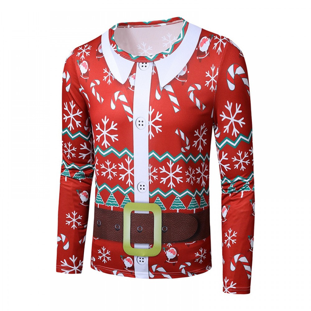 New 3D Personality Printing Fashion Men's Christmas Long-Sleeved T-Shirt