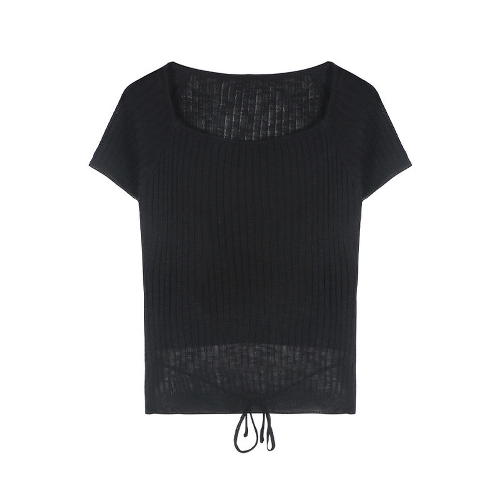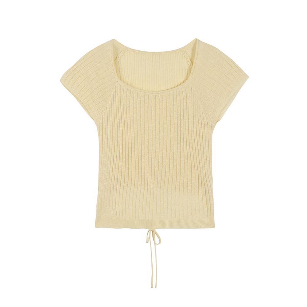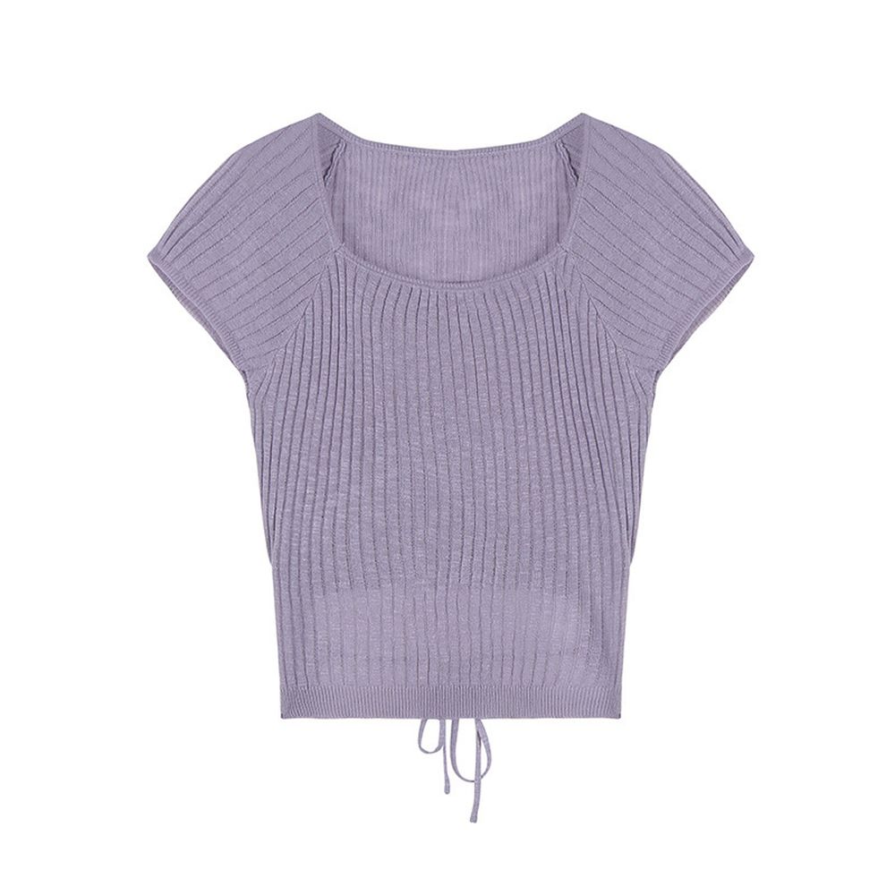 Women's Summer Short Sleeve Knitted Square Collar Top